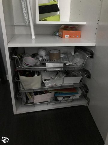Smarta hyllor som gör att man kan ställa t ex sopborste, mopp, dammsugare bakom.